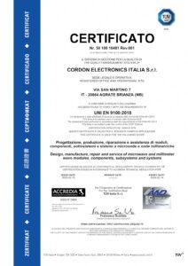 Cordon Electronics Italia is certified UNI EN ISO 9001:2015.